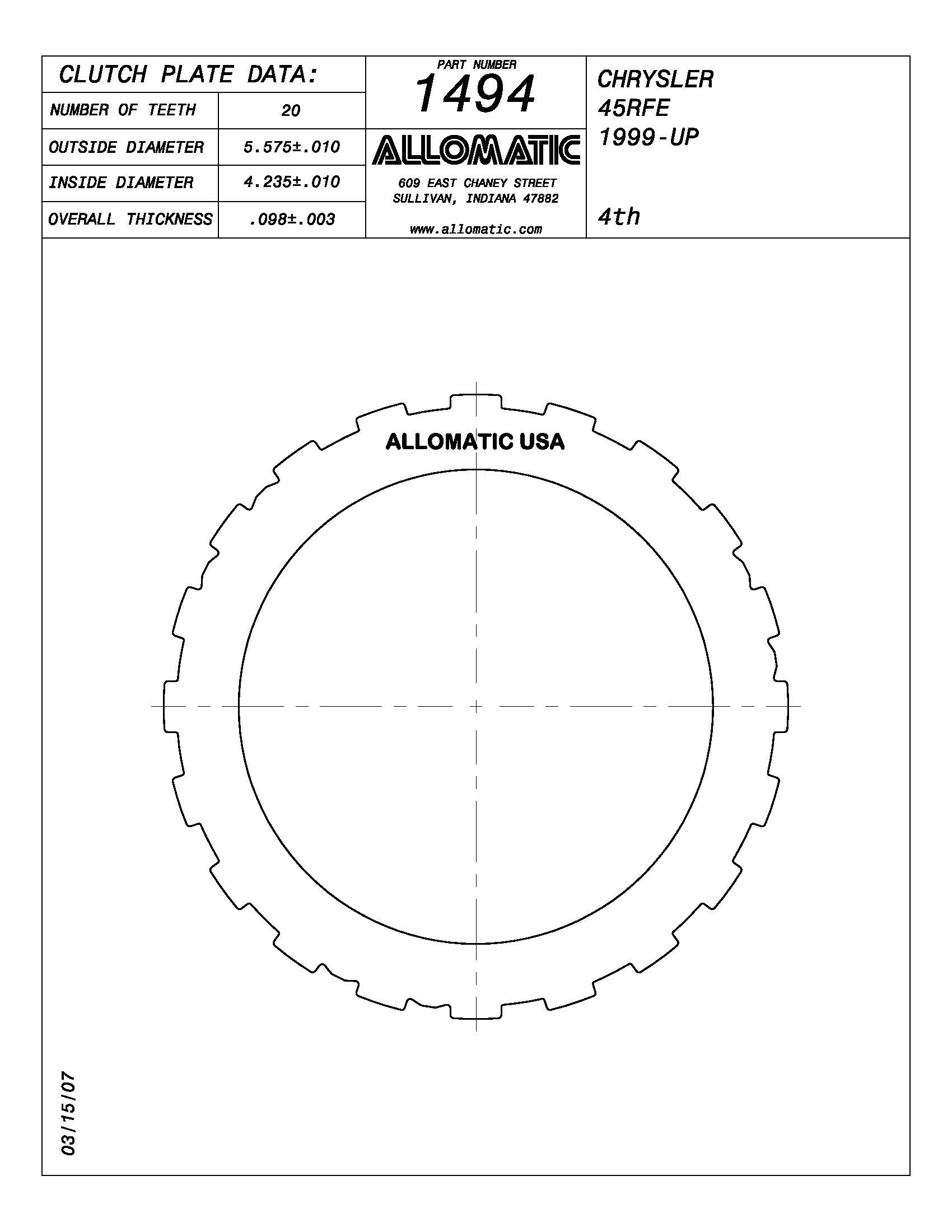 Kolene Steel Clutch Plate